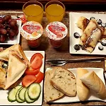 또한 일부 객실에서는 도시 내려다 보입니다. 타일 바닥이 있는 객실이 있습니다.